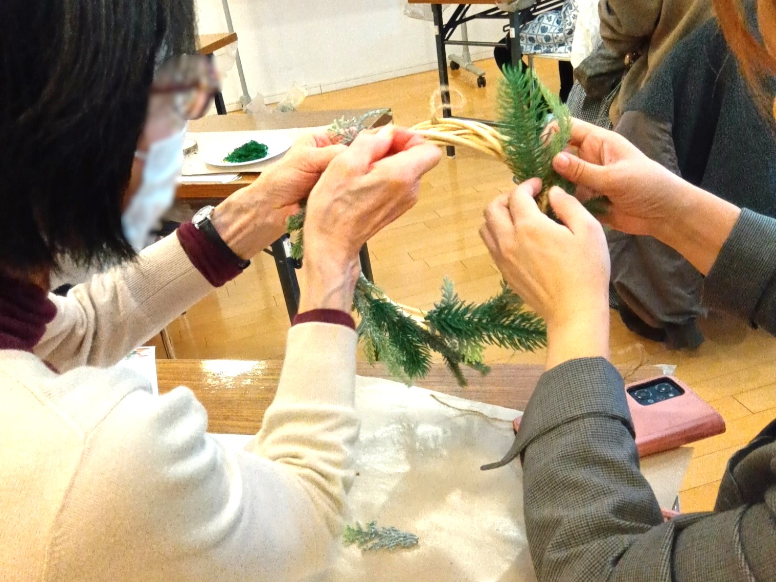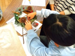 お子様から大人の方まで、たくさんの方にご参加いただき、世界に一つだけの素敵なオリジナルリースとツリーを作っていただきました。